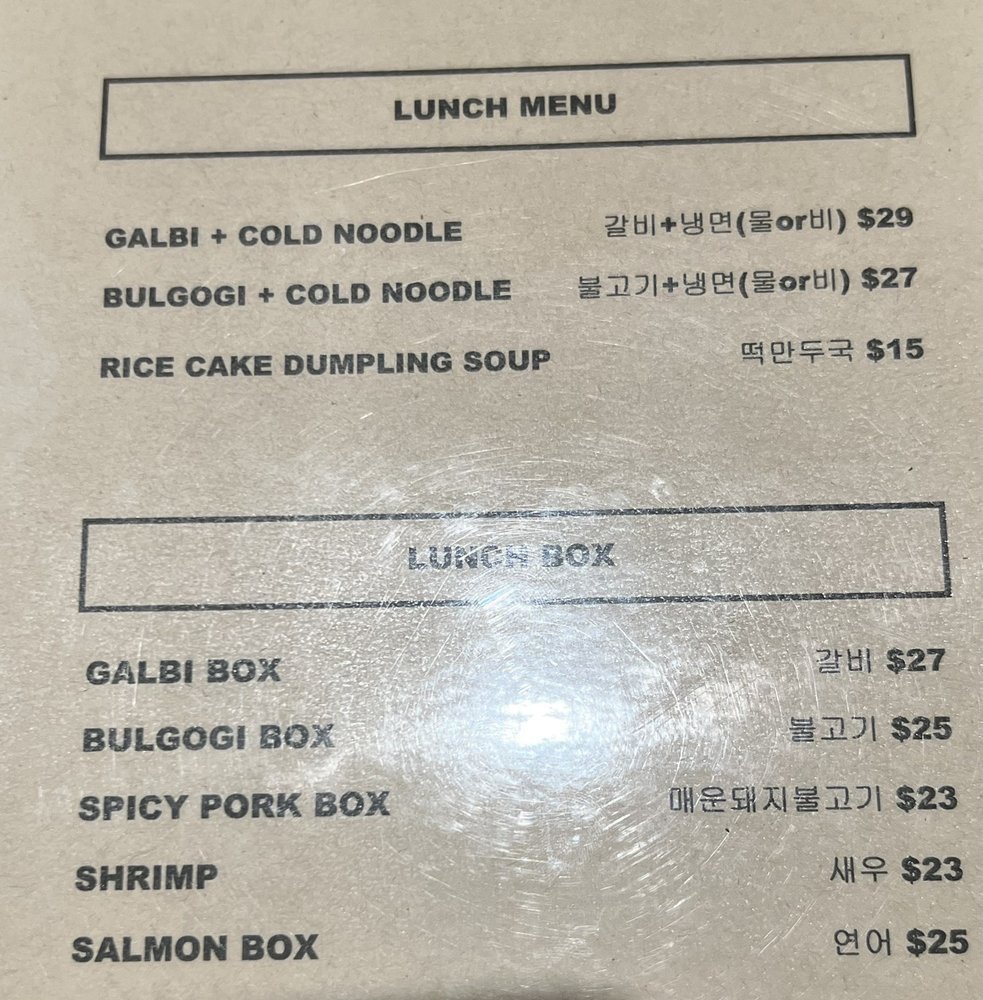 **Prices and items may differ from dine in menu. Marinated and grilled beef.